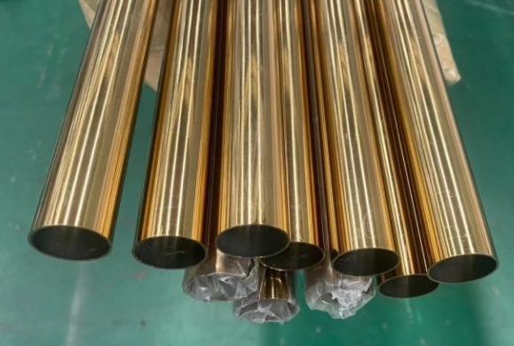 Gold stainless steel tubes in production for a customer order in the Philippines