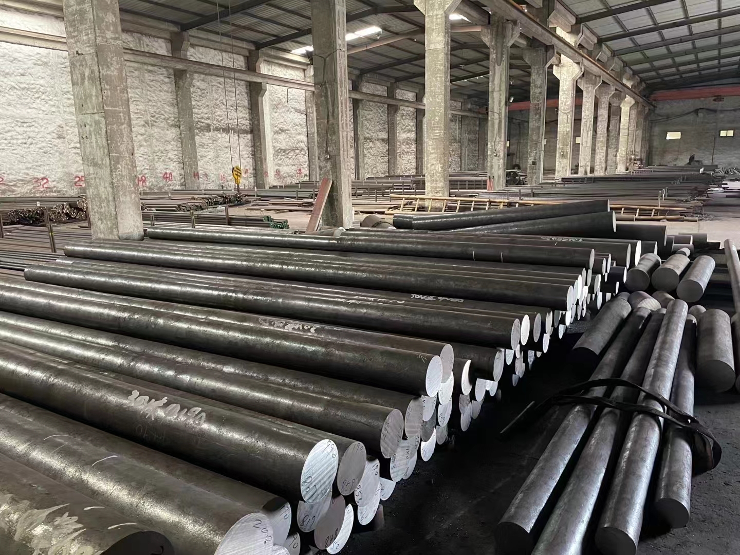 A large number of stainless steel round steel into storage.
